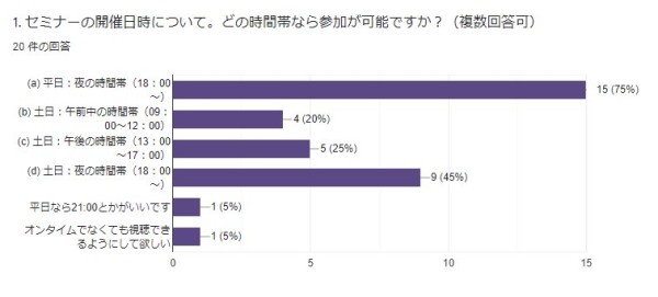 まず、皆様がオンラインの場で集まるにあたって、どのような時間が都合が良いかをお伺いしました。