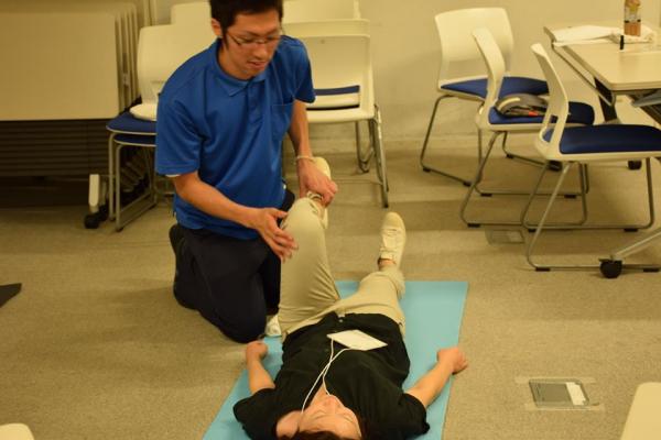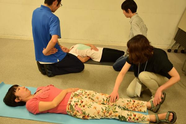 講義形式のセミナーから、介助方法、立ち上がり方等の実技体験も行う。