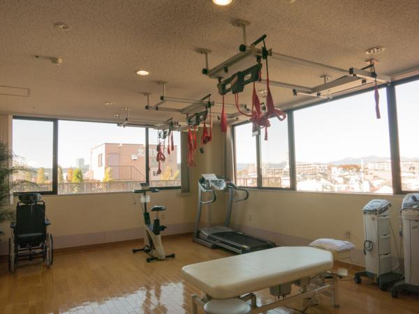 -北原国際病院のリハビリテーション室。光が差し込む素敵な環境だ-