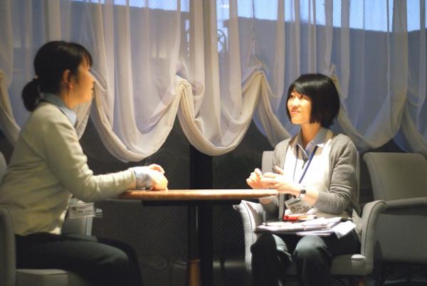 -担当患者がボランティアに加われないか相談するOT渡部さんと、はびるす担当のOT峯尾さん-