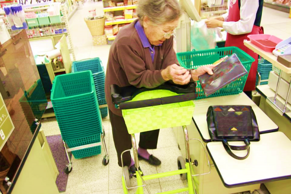 そんな折、たまたまショッピングセンターにいくと、高齢のおばあちゃんが辛そうに買い物をしている姿を見て、