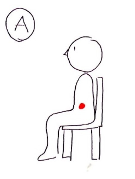 このため、座っている時は重心は椅子の上に重心がありますね。★図A★