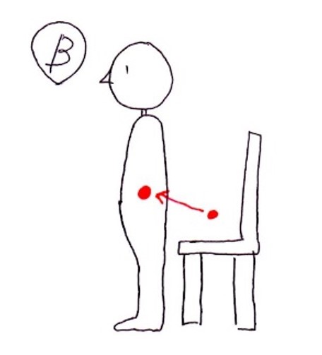 頭の重さを使ってお尻が自然と椅子から離れるため、お尻を持ち上げるのにほとんど力が必要なくなります。