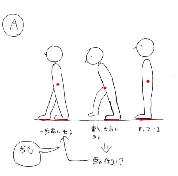 さて、歩行とは転倒と隣り合わせだということはわかるかと思いますが、もう少しシンプルに考えてみます。