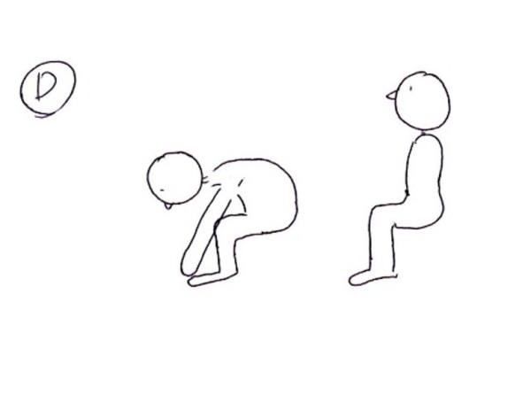 この際にできるだけ身体の真ん中を頭が通るように前屈みができることが理想です。
