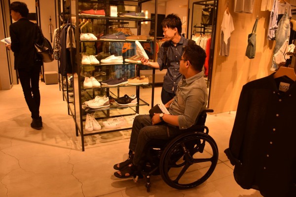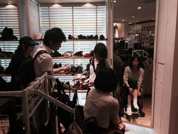 まずは、複数のチームに分かれて、事前に岡野さん、鈴木さんが車椅子でもショッピングを楽しめるという観点から調査した店舗へ足を運び、ショッピングを楽しむ。