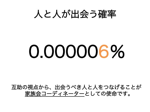 人と人が出会う確率は0.000006%、我々が今出会っている対象者や友人、